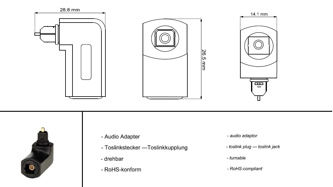 Optický kabel pro digitální propojení audio periférií s vynikajícím zvukovým přenosem signálu rychlostí světla. Oproti metalickým kabelům není ovlivňován elektromagnetickým rušením, způsobujícím chyby v přenosu nebo zkreslení zvuku (u analogového přenosu)