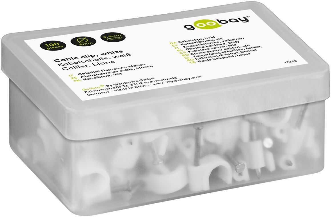 goobay Kabelová příchytka na kabel 10mm, upevní a zafixuje kabely na požadovaném místě. Balení obsahuje 100ks příchytek.