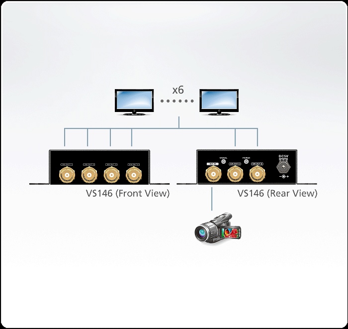 ATEN VS-146 je určen k rozobočení z jednoho signálu 3G/HD/SD SDI na až 6 zobrazovacích jednotek, nebo signálů SDI.. Signál rozbočuje v reálném čase.