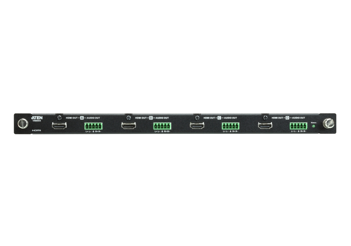 VM-8804 je 4-Port DVI výstupní deska pro modulární přepínač VM-1600. Deska nabízí 4 výstupy v provedení HDMI.