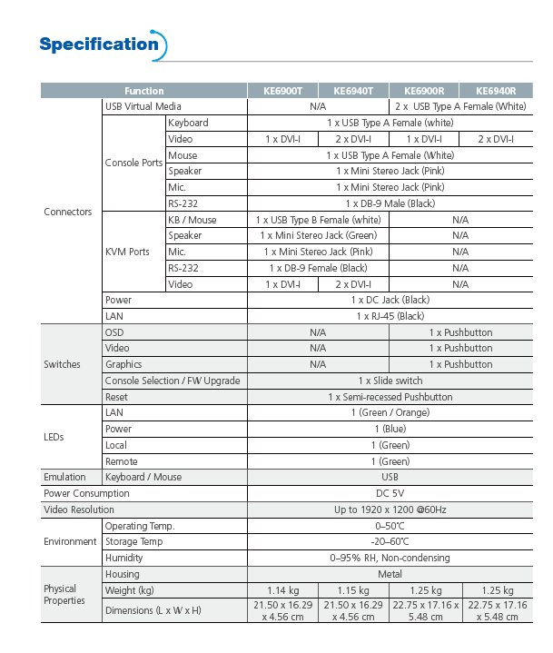 Aten KE-6940 Dual View zařízení umožňuje vzdálené ovládání počítače/pracovní stanice nebo KVM přepínače přes počítačovou síť či internet. Podporuje přenos digitálního videa DVI, audia, USB klávesnice a myši.