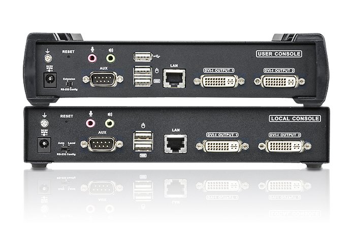 - dualní konzole – umožní ovládat počítač z lokální (transmitter) jednotky i vzdálené (receiver) jednotky přes USB klávesnici, myš a monitor