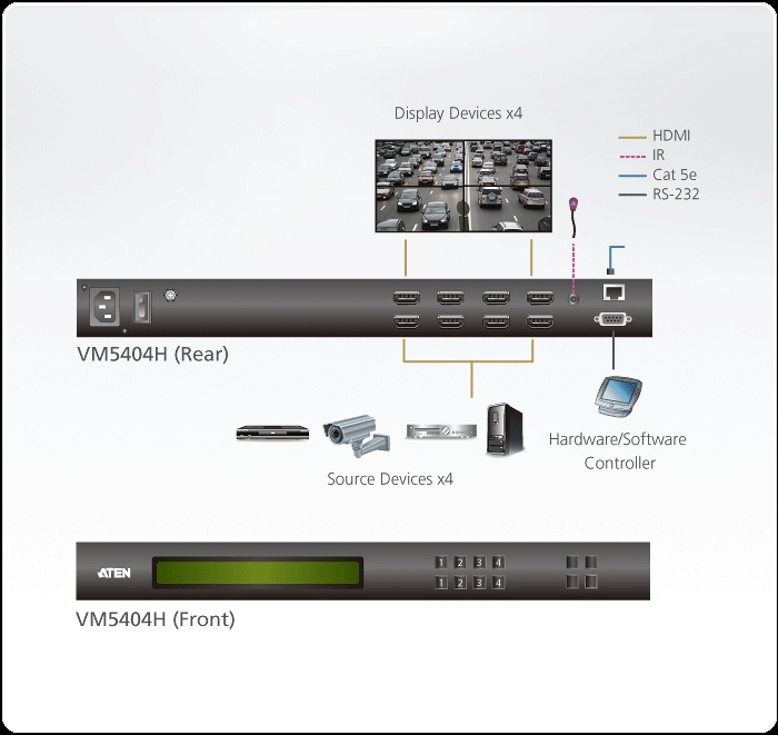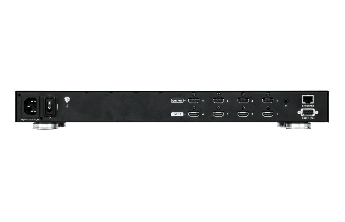 Umožní připojit 4 HDMI zdroje k 4 HDMI zobrazovačům v jakékoliv kombinaci vstupů/výstupů až na vzdálenost 15m. Vestavěný scaler pro zvýšení rozlišení obrazu a jeho kvality a přizpůsobení obrazu pro nativní rozlišení zobtrazovací jednotky.