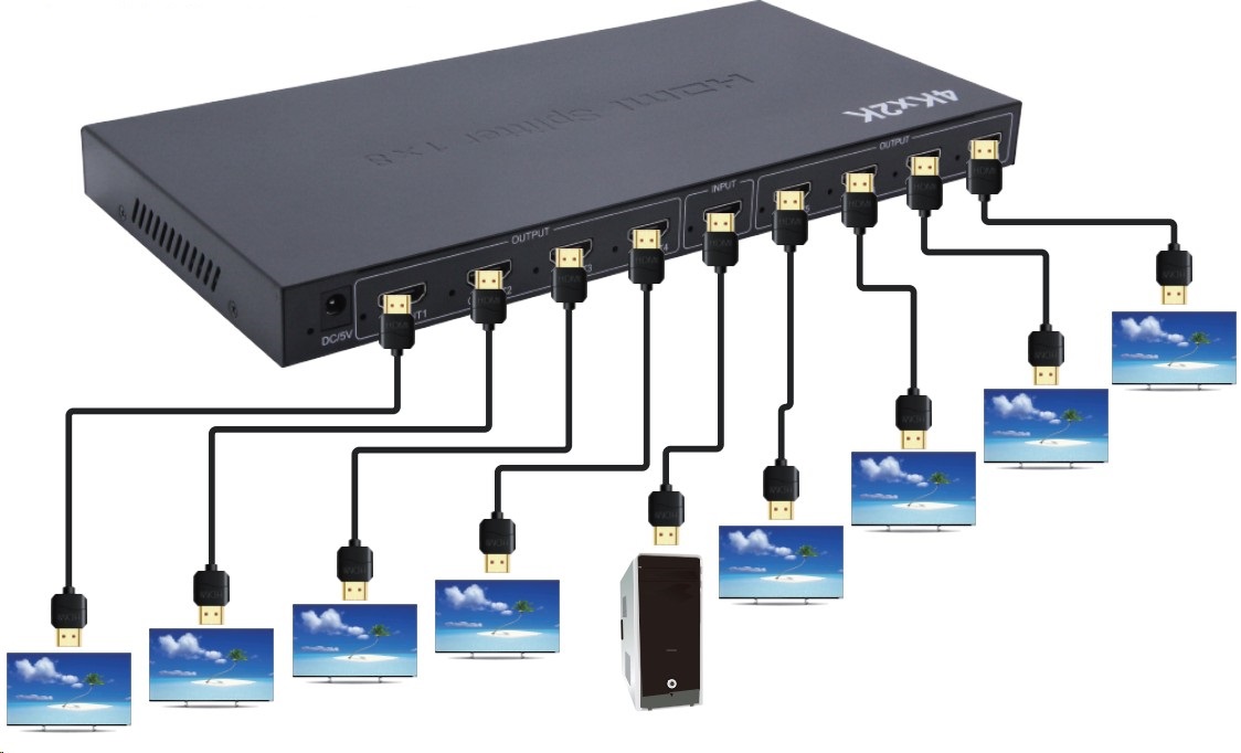 Můžete připojit několik HDMI obrazovek k jednomu HDMI zdroji signálu.