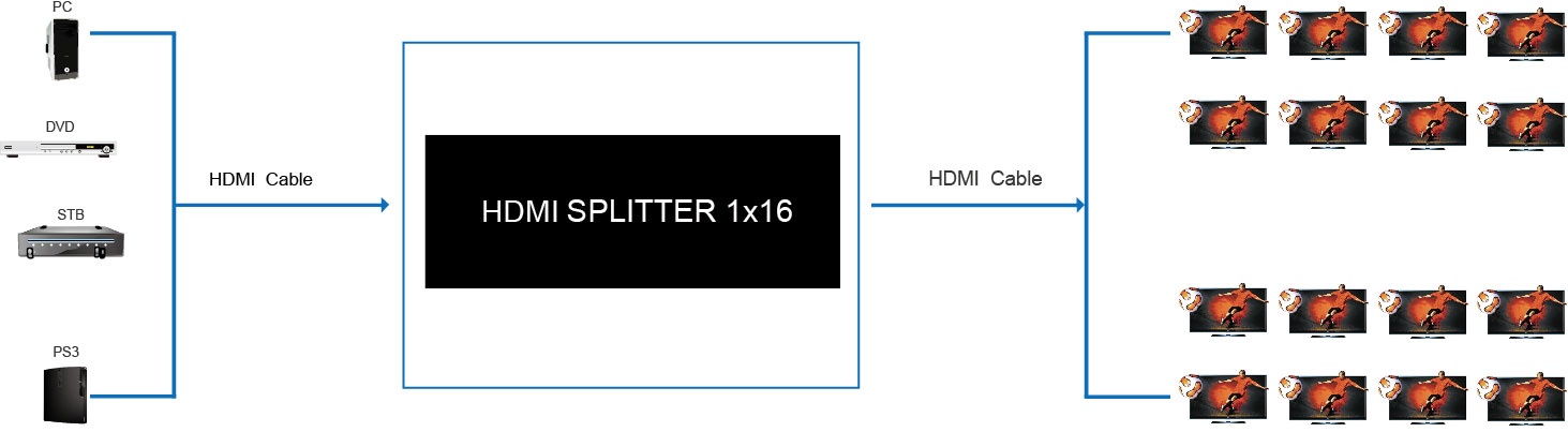 Můžete připojit několik HDMI obrazovek k jednomu HDMI zdroji signálu.