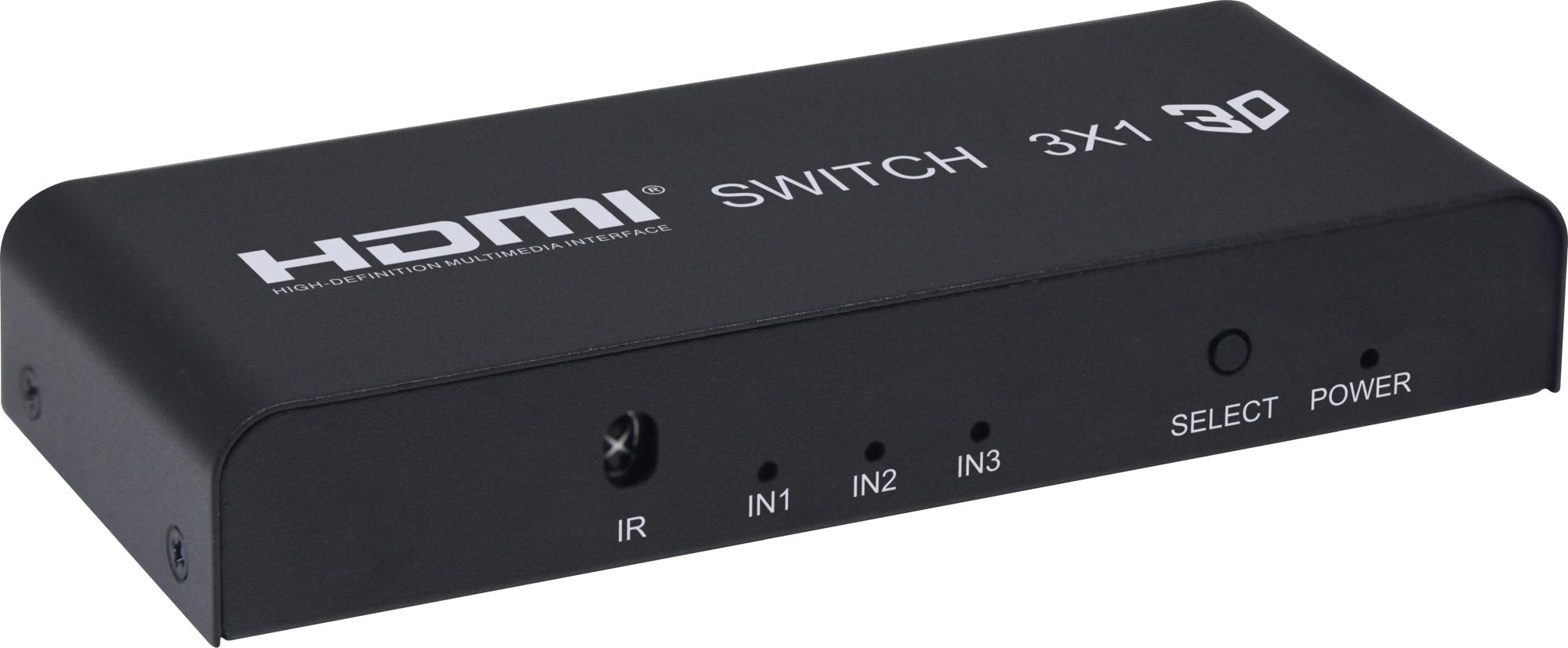 PremiumCord HDMI switch 3:1 kovový s dálkovým ovladačem a napájecím adaptérem