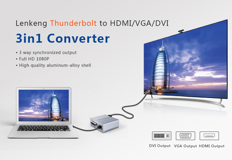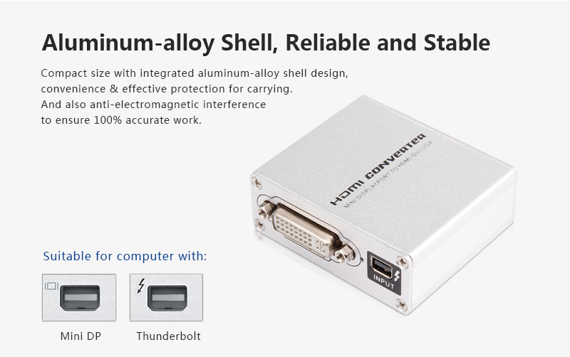 Tento adaptér umožňuje propojit novou generaci notebooků MacBook, MacBook Pro nebo MacBook Air vybavených Mini DisplayPort výstupem s LCD nebo televizí.
