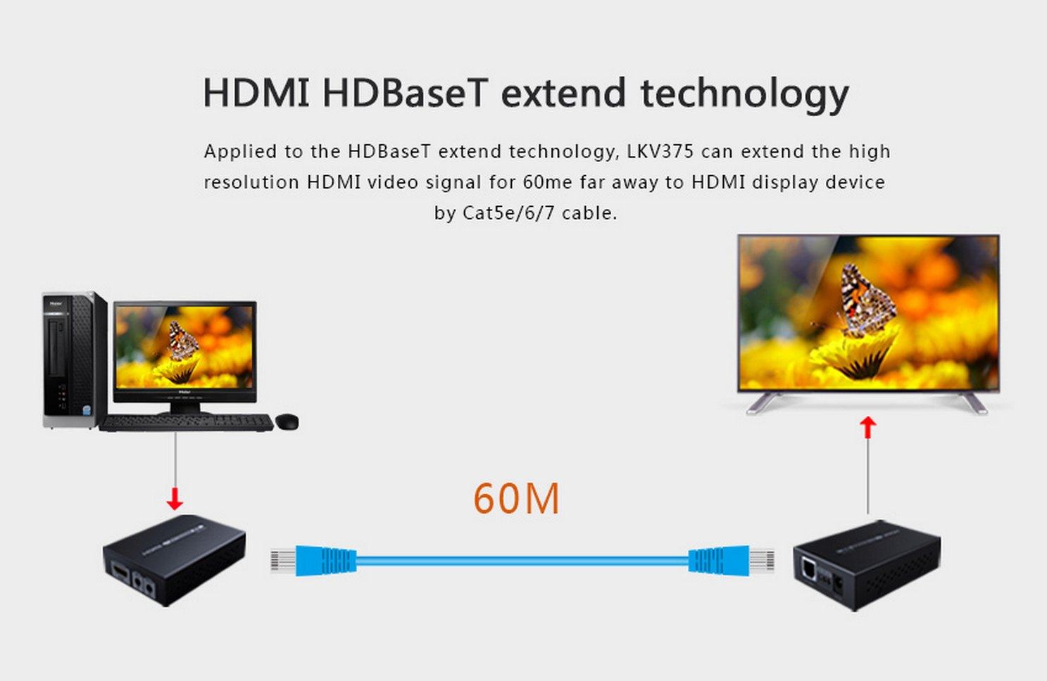 Zařízení umožňuje po síťovém kabelu přenést HDMI 4K x 2K nebo FULL HD 1080p signál až na 70m.