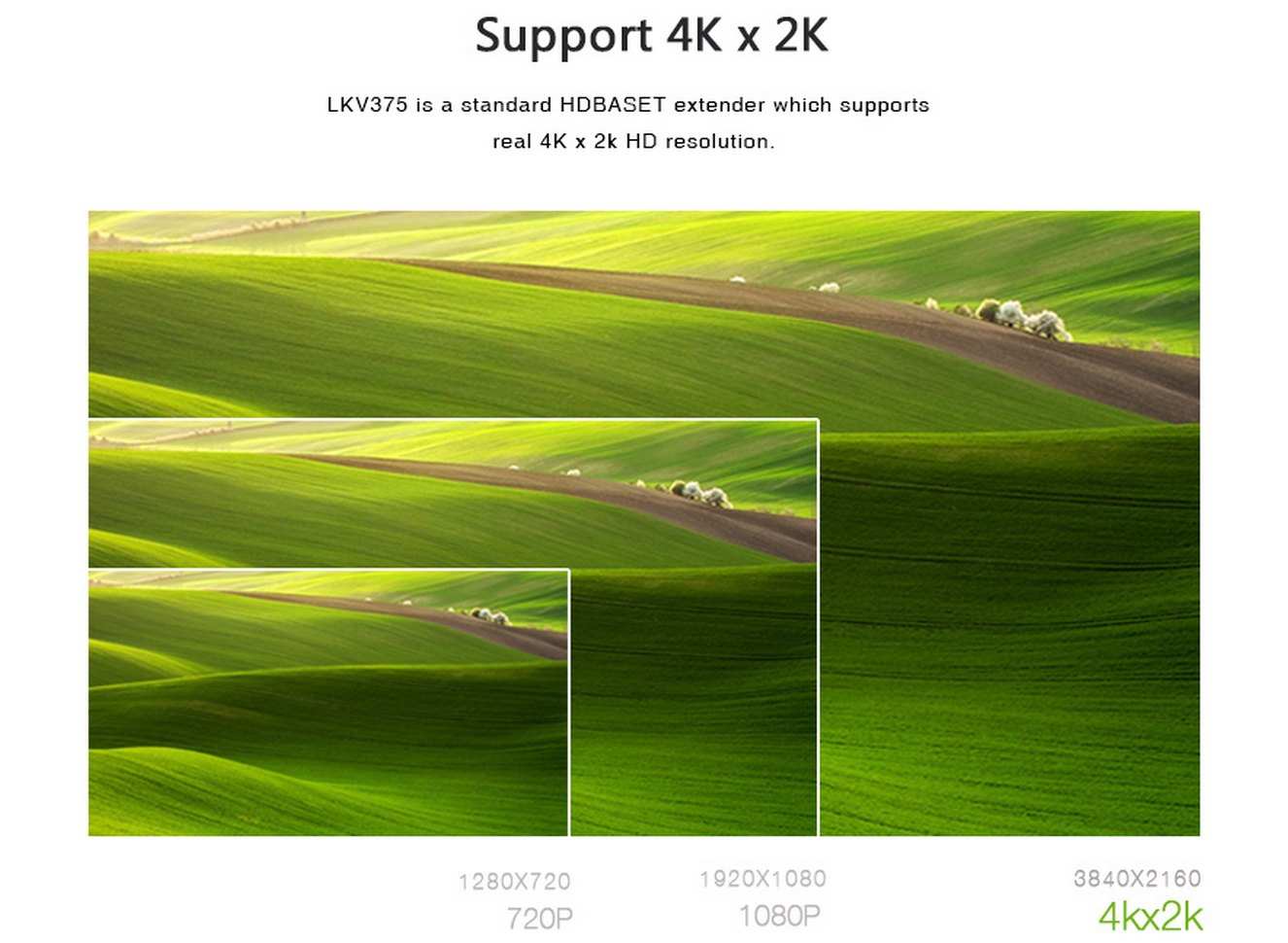 - Umožňuje po Cat5e/Cat6 přenášet obraz až do rozlišení 4Kx2K@30Hz a 4Kx2K@60Hz (4:2:0)
