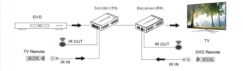- Extender přenáší HDMI digitální obraz, zvuk a IR řídící signály