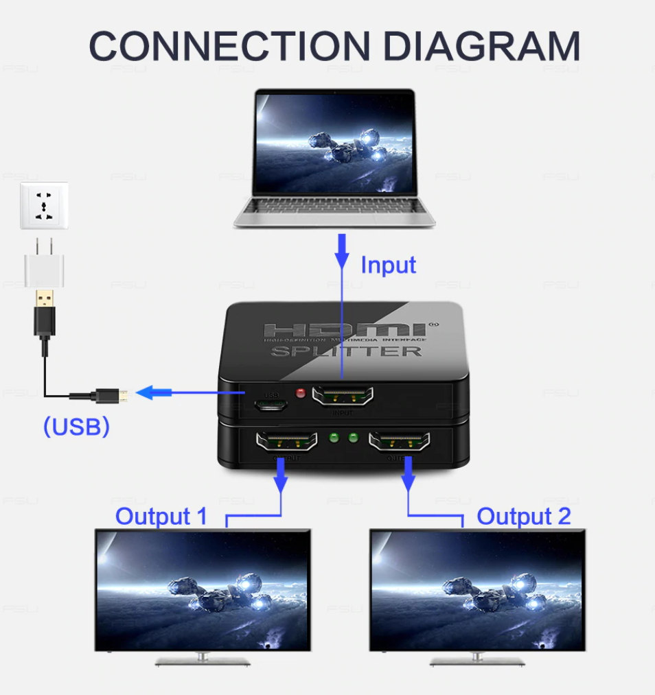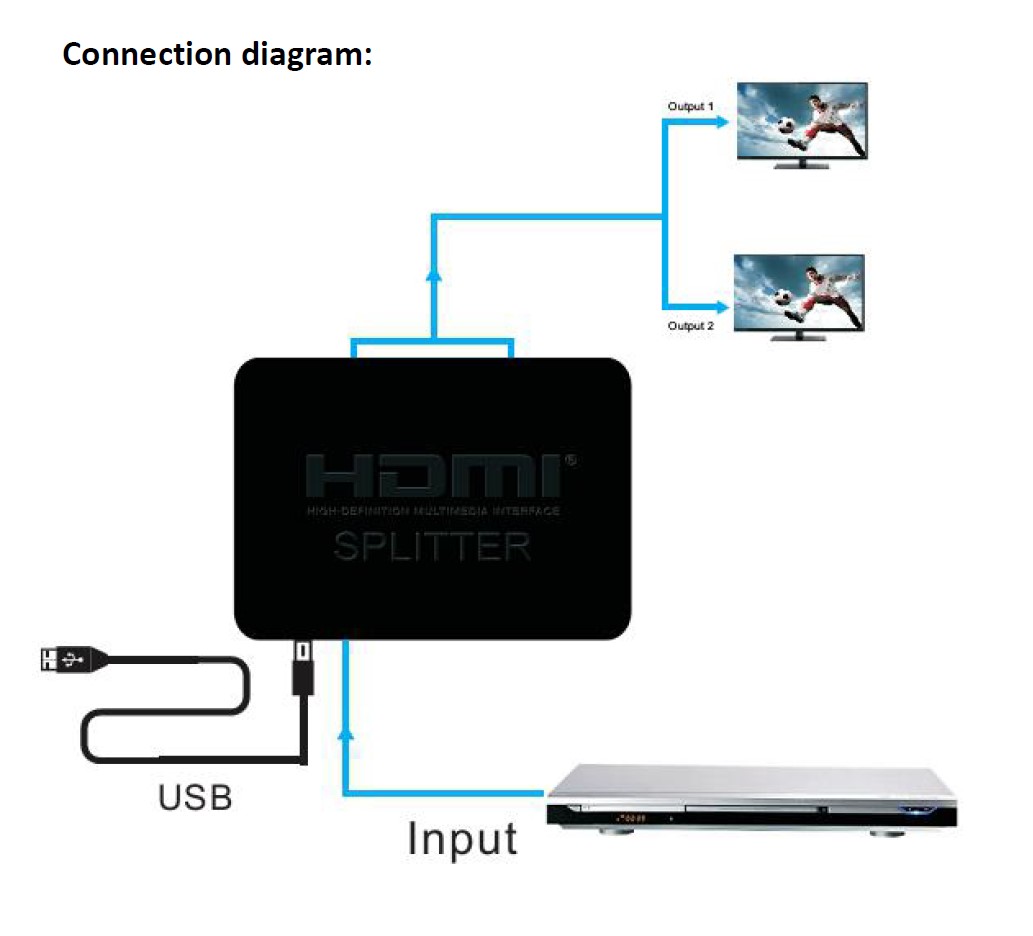 1) Vstup HDMI splitteru zapojte HDMI kabelem do zdroje signálu a výstup zapojte do zobrazovací jednotky nebo monitoru.