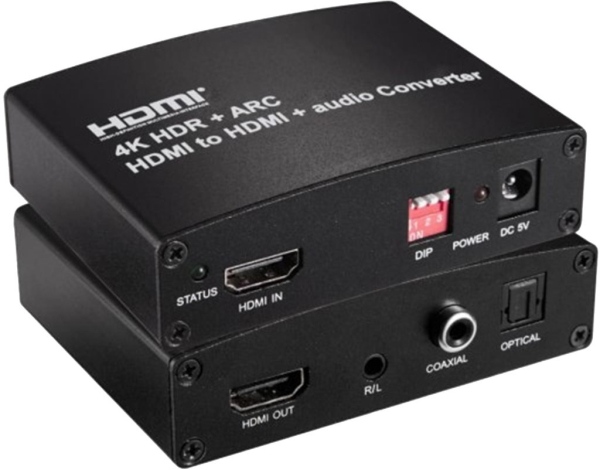 HDMI Audio Extractor můžete oddělit zvukový signál od signálu HDMI, což vám umožní reprodukovat zvuk prostřednictvím externího reproduktoru, prostorového systému, zesilovače nebo sluchátek - tímto způsobem vždy vyvedete zvukový signál do vybraného zařízení v optimální kvalitě. Obraz je vyveden v brilantním rozlišení 4K prostřednictvím výstupu HDMI; můžete zde připojit televizor, monitor nebo projekt. Ideální pro vaše domácí kino! Zvuk lze vyvést ve stereofonním formátu prostřednictvím 3,5mm jack konektoru nebo v 5.1kanálové technologii prostřednictvím Toslink™ (SPDIF/optický). Integrovaný zesilovač signálu HDMI® také zlepšuje obrazový signál (Full HD až na 15 m, 4K až na 10 m).