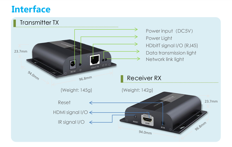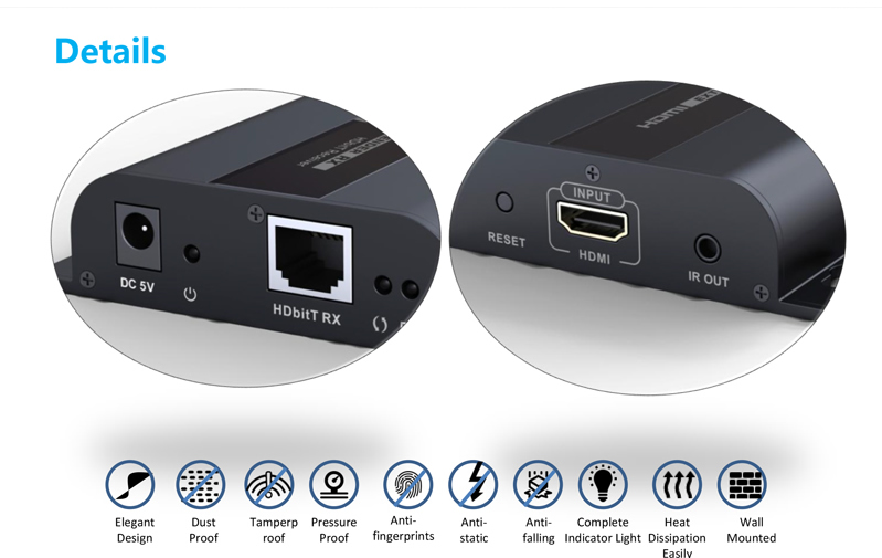 Zařízení umožňuje přes síť bez zpoždění přenést HDMI obraz 4K a FULL HD 1080p signál a současně připojení USB periferií až na vzdálenost 150m.