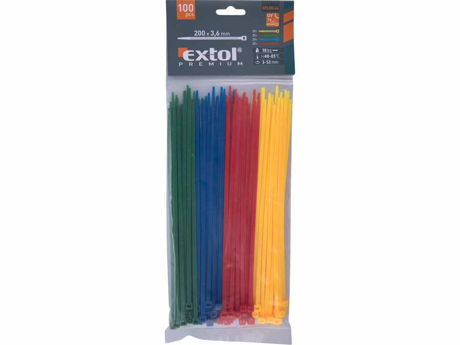 Extol Premium Vázací pásek 3.6x200mm /100ks/ - 4 barvy