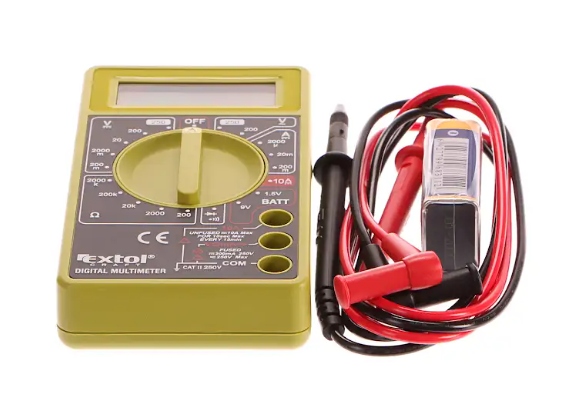 Extol Craft Digitální multimetr (U,I,R), měření do 250V/10A/2000kO, test baterií Digitální multimetr je určen pro měření stejnosměrného proudu a napětí, střídavého napětí a odporu.