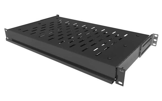 Police do rackové skříně v kvalitním provedení z tlustého plechu a povrchovou upravou RAL 9005, výsuvné provedení.