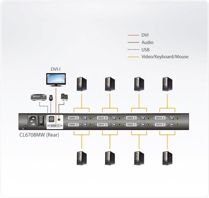 CL6708MW přináší další možnosti do řady ATEN LCD KVM přepínačů s jeho nativní kompatibilitou s DVI rozhraním. Zařízení integruje LCD panel, plnohodnotnou klávesnici a touchpad do prostorově efektivního 1U provedení pro úsporu místa v racku.
