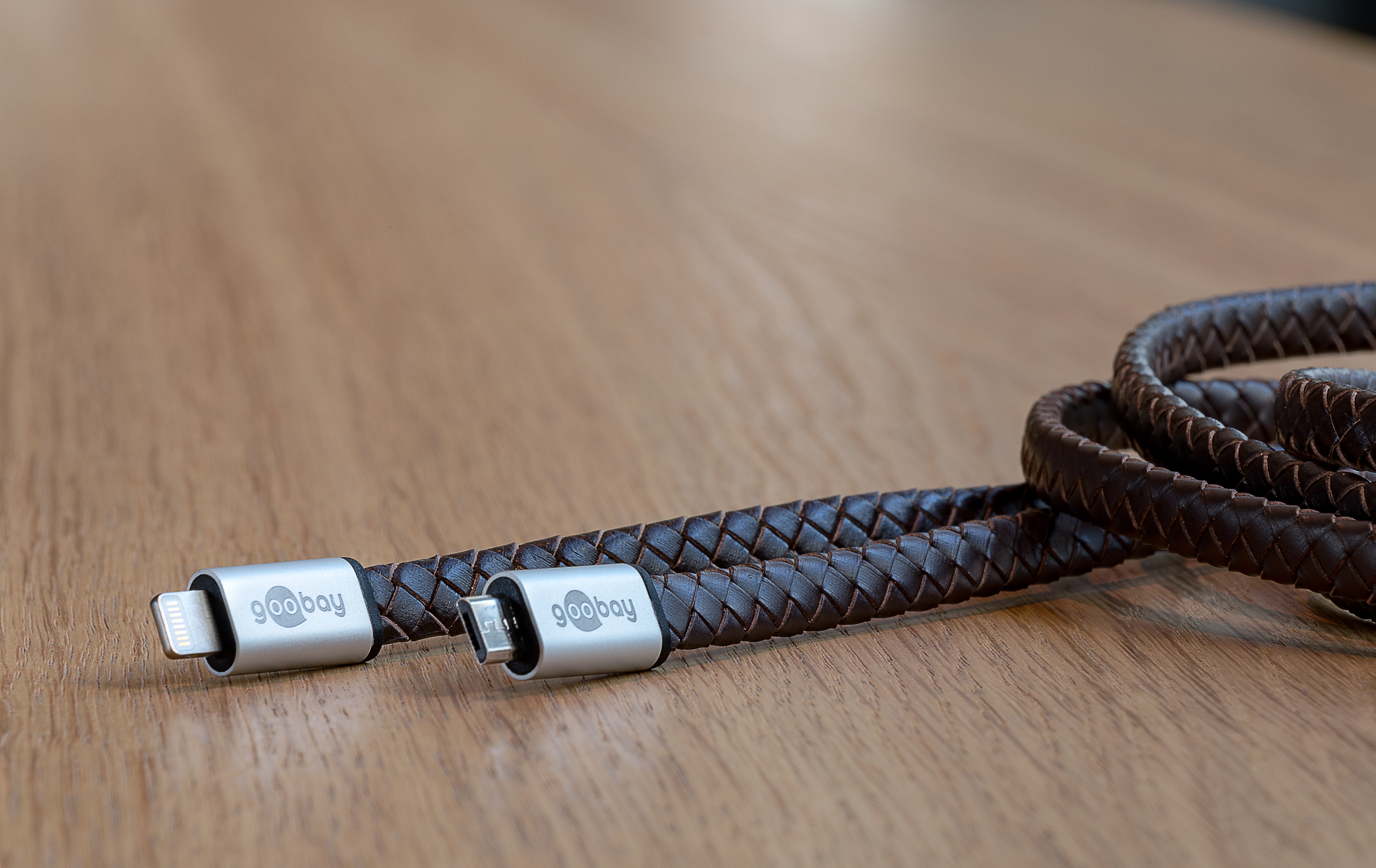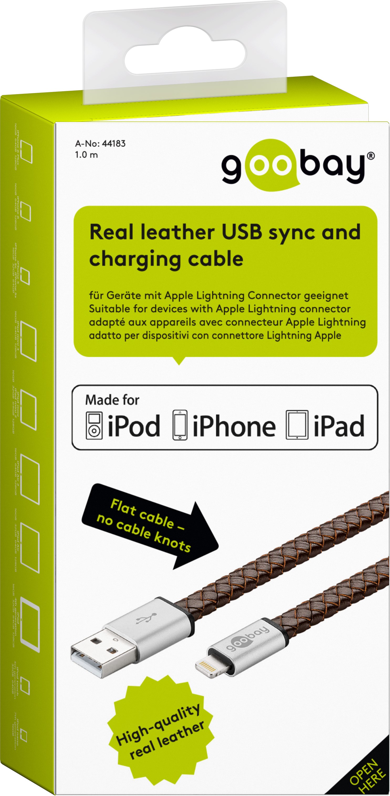 goobay Lightning iPhone nabíjecí a synchronizační kabel v pravé kůži, 8pin - USB A M/M, 1m