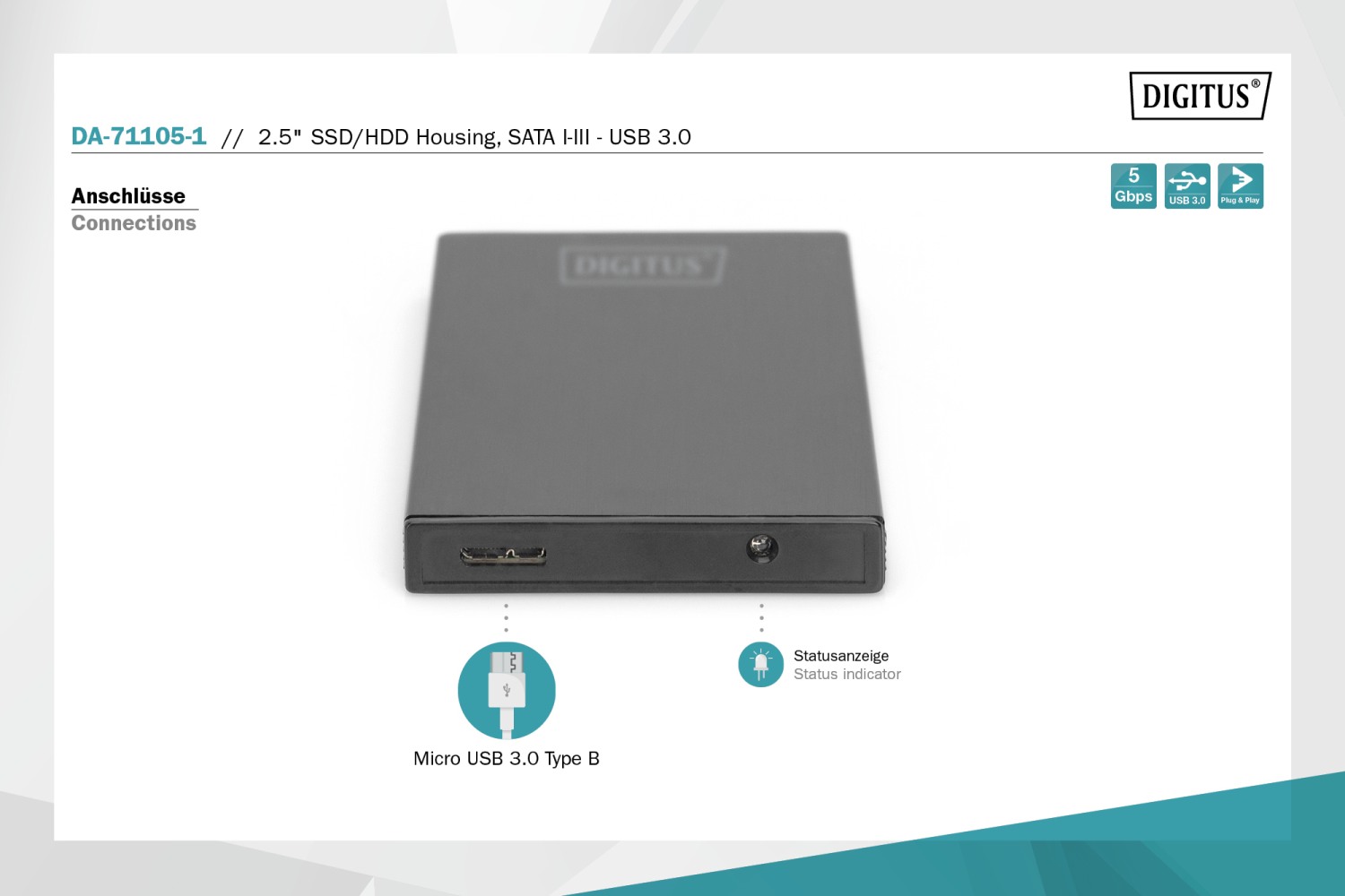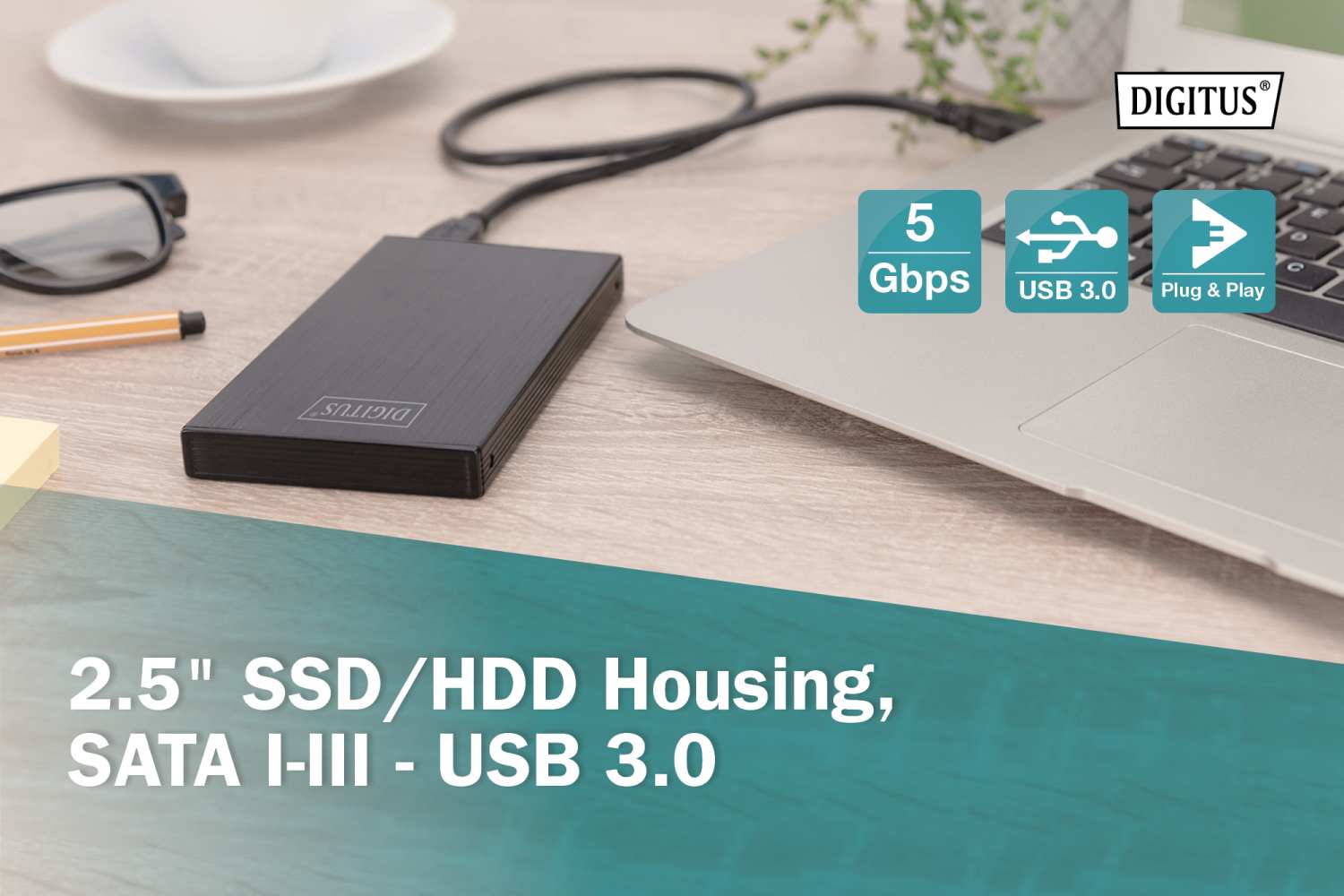 DIGITUS Externí box 2,5" SATA I/II/III - USB 3.0, prémiový vzhled, hliníkový plášť