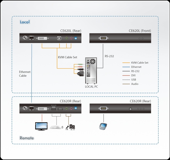 Aten CE620 USB DVI HDBaseT ™ 2.0 KVM Extender integruje nejnovější HDBaseT ™ 2.0 technologie, které poskytují nejspolehlivější přenos videa, audia, USB a RS-232 signálů na trhu. CE620 poskytuje vysoce kvalitní DVI video, PCM 2-kanálový digitální audio, USB 2.0 a RS-232 signály do 100 metrů od zdrojového počítače pomocí jediného Cat5e / 6 kabelu. S jednoduchou instalací kabelu, podporující různé signály, je CE620 ideální pro aplikace, kde je vyžadován pohodlný vzdálený přístup - v místech, jako je kontrola dopravy center, zdravotnických zařízení, průmyslových skladech...