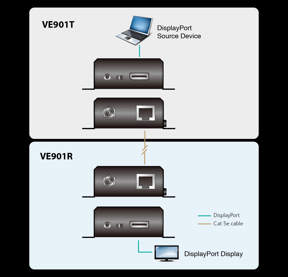 1x VE901R DisplayPort HDBaseT-Lite Receiver
