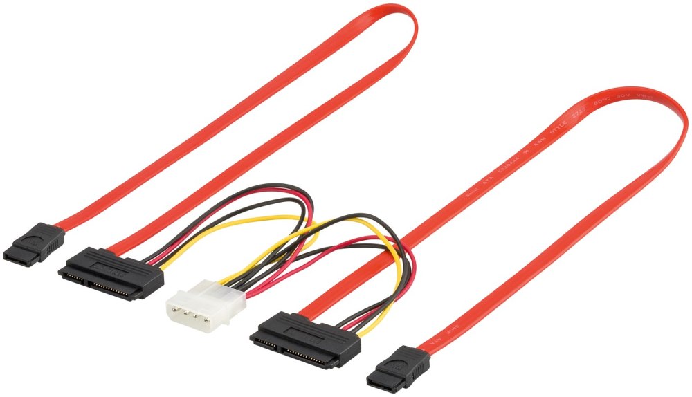 - Dva spojené SATA kabely se společným jedním napájecím konektorem