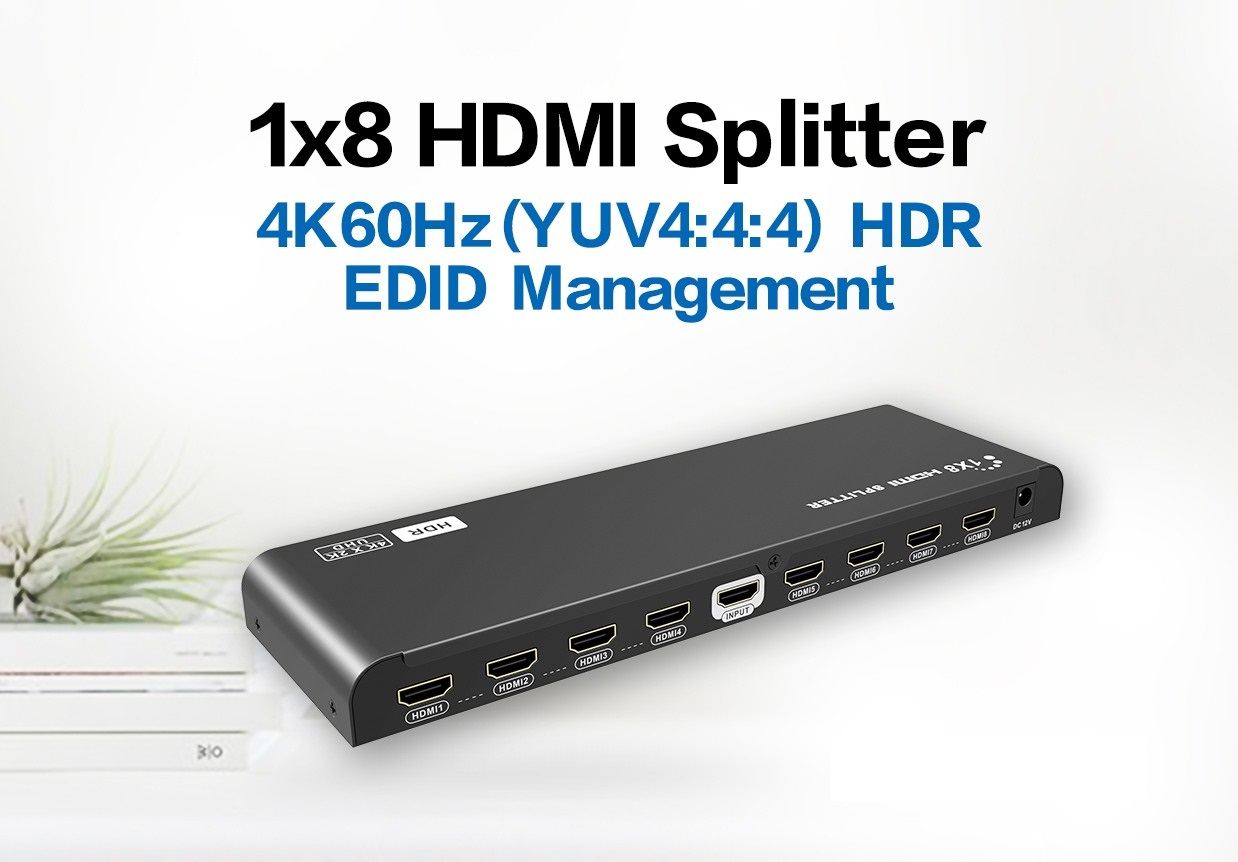 PremiumCord HDMI 2.0 splitter 1-8 porty, 4K/60Hz, FULL HD, 4K/1080p downscaler, HDR, 3D, černý
