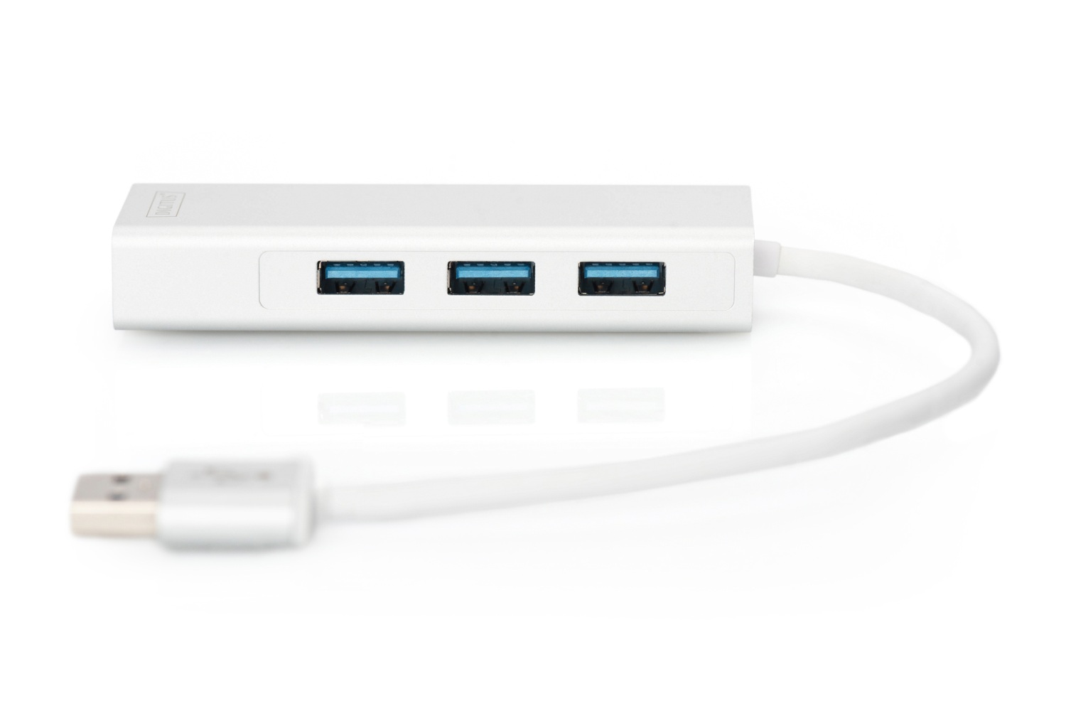 DIGITUS USB 3.0, 3-port HUB, Adaptér na Gigabit Ethernet ,1x RJ45, 10/100/1000Mbps