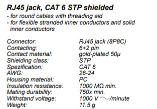 Konektor RJ45 8pinů Cat6A - pro montáž bez nástroje a kleští pro drátové a lankové vodiče AWG 22-26