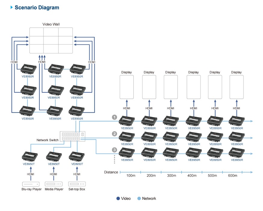 VE8900 poskytuje efektivní, snadno použitelné a ekonomické řešení digitálního systému s následujícími funkcemi a výhodami, které přímo reagují na problémy, se kterými se integrátoři setkávají při zavádění systémů AV přes IP: