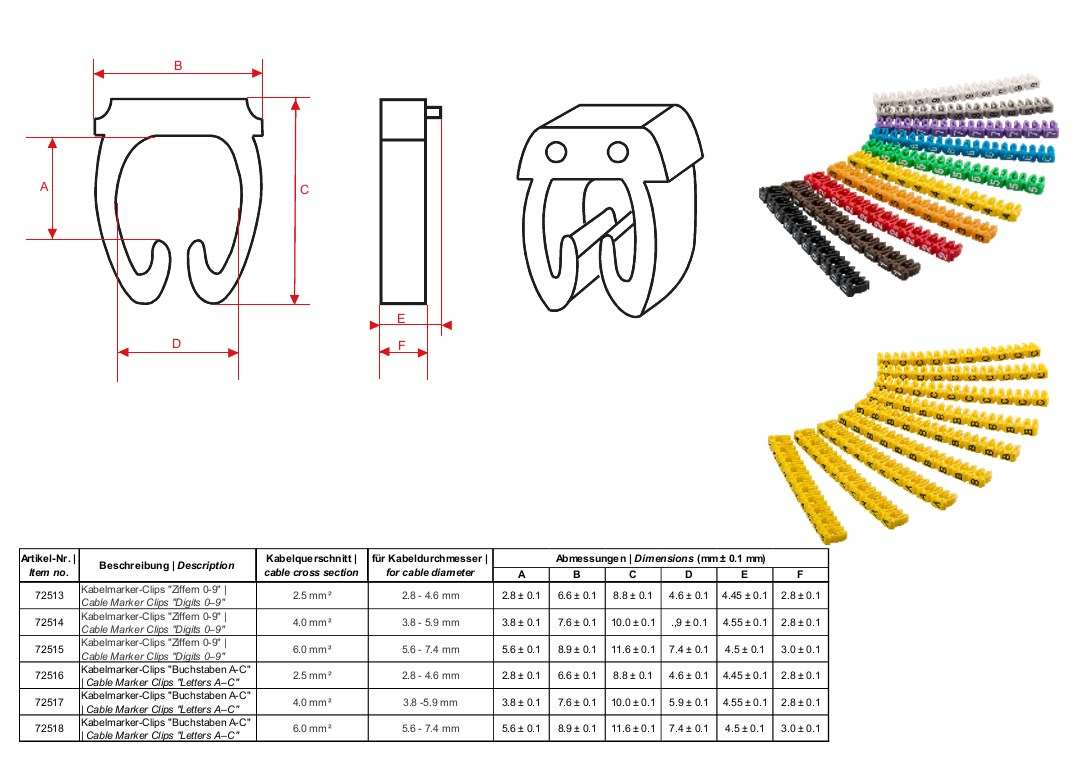Značkovače kabelů, násuvné klipy na kabel, pro kabely o průměru do 6 mm. Vhodné např. pro označování kabelů pro počítačovou síť.