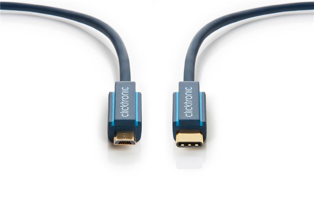 ClickTronic HQ OFC Kabel USB-C/male - USB 2.0 Micro-B/male, modrý, 50cm