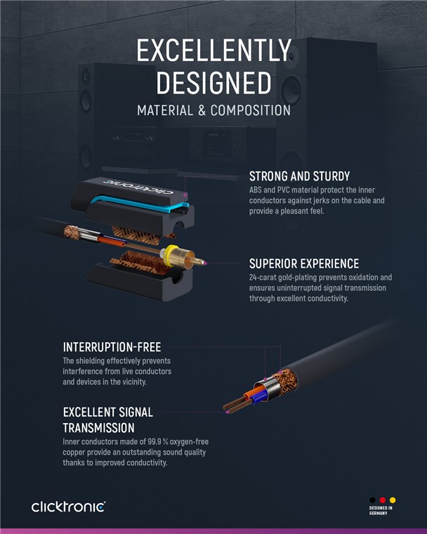 - vodiče z čisté mědi a dvojité stínění kabelu pro krystalově čistou kvalitu obrazu a zvuku