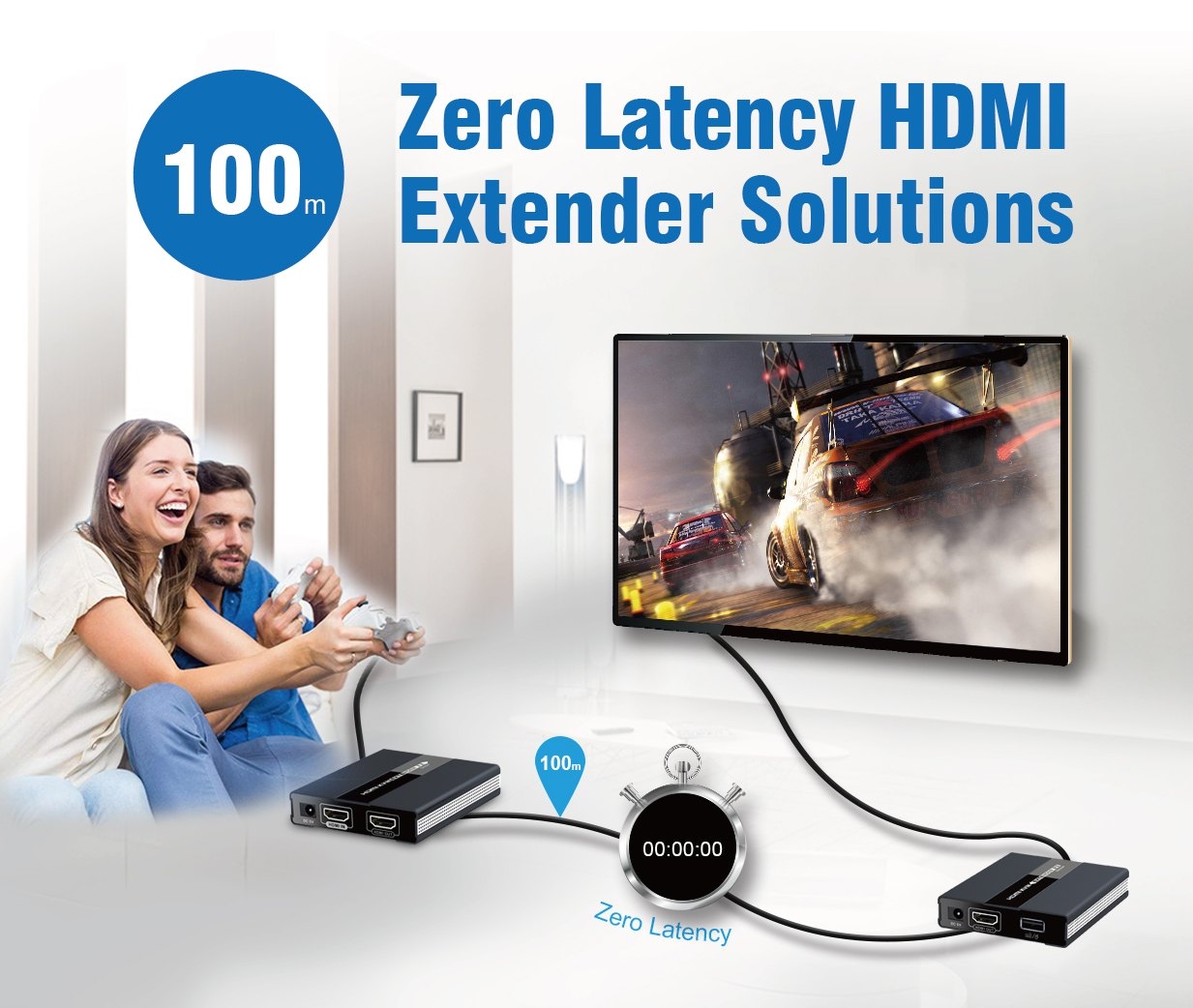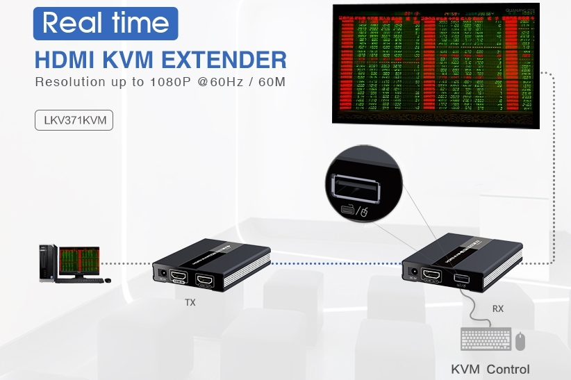 Zařízení umožňuje po jednom síťovém kabelu bez zpoždění přenést HDMI FULL HD 1080p signál a USB 2.0 až na vzdálenost 60m.