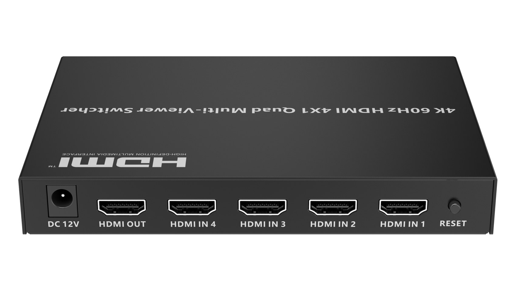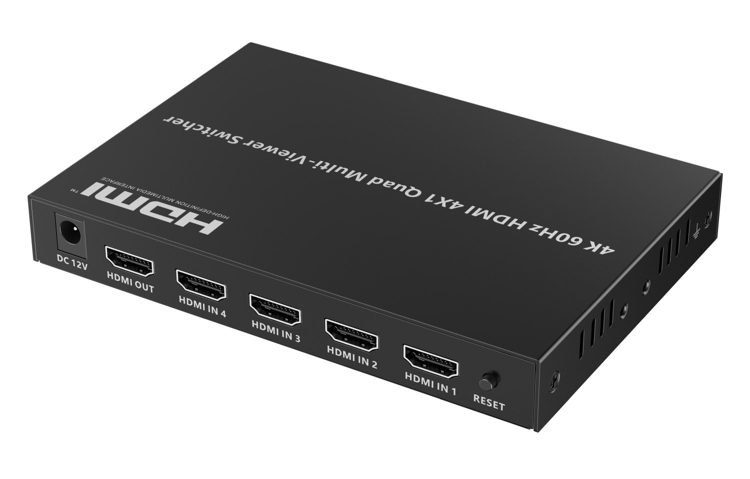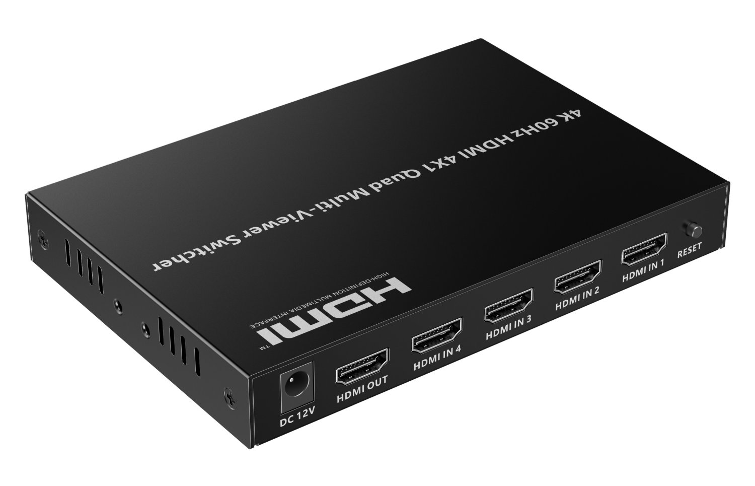 HDMI 4x1 Quad Multi-prohlížeč je vysoce výkonný přepínač a zobrazovač. Umožňuje přepínání vstupů na jeden výstup a dále zobrazení všech čtyř obrazů na jedné obrazovce.