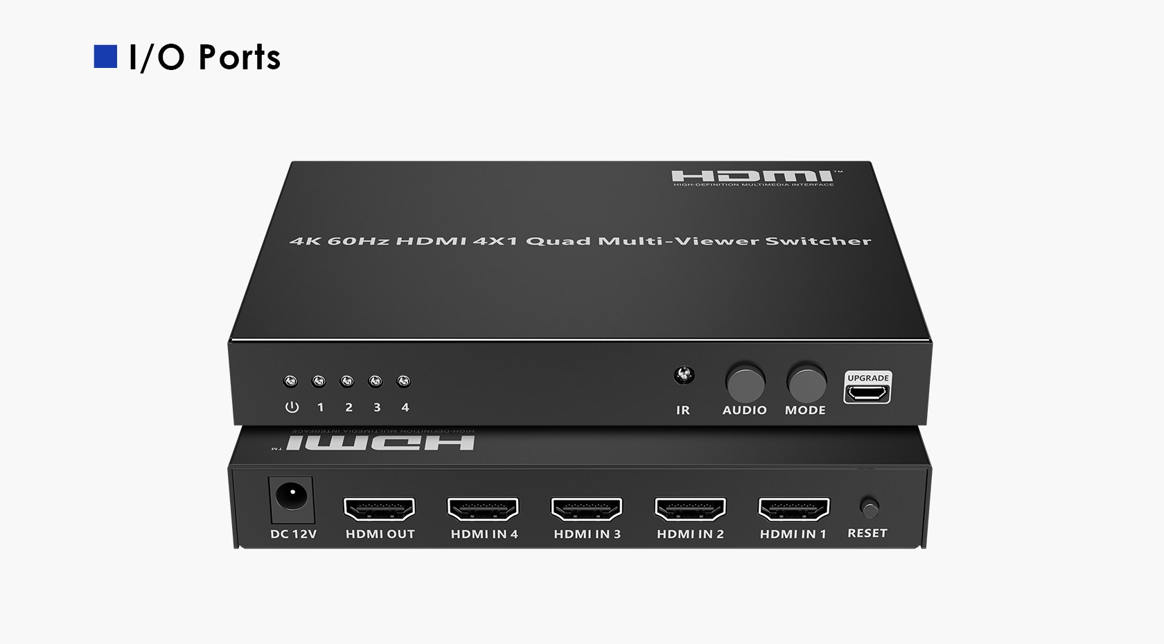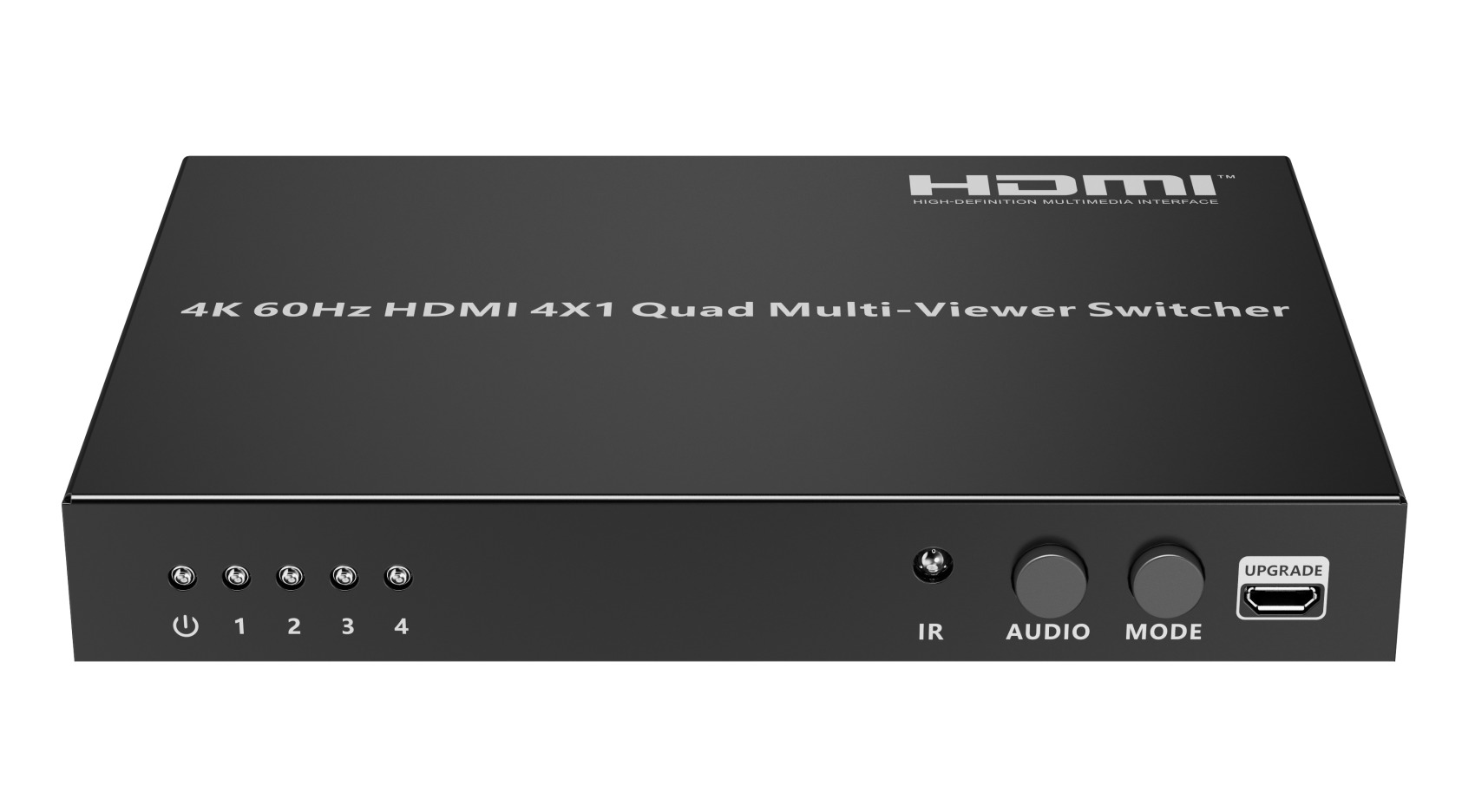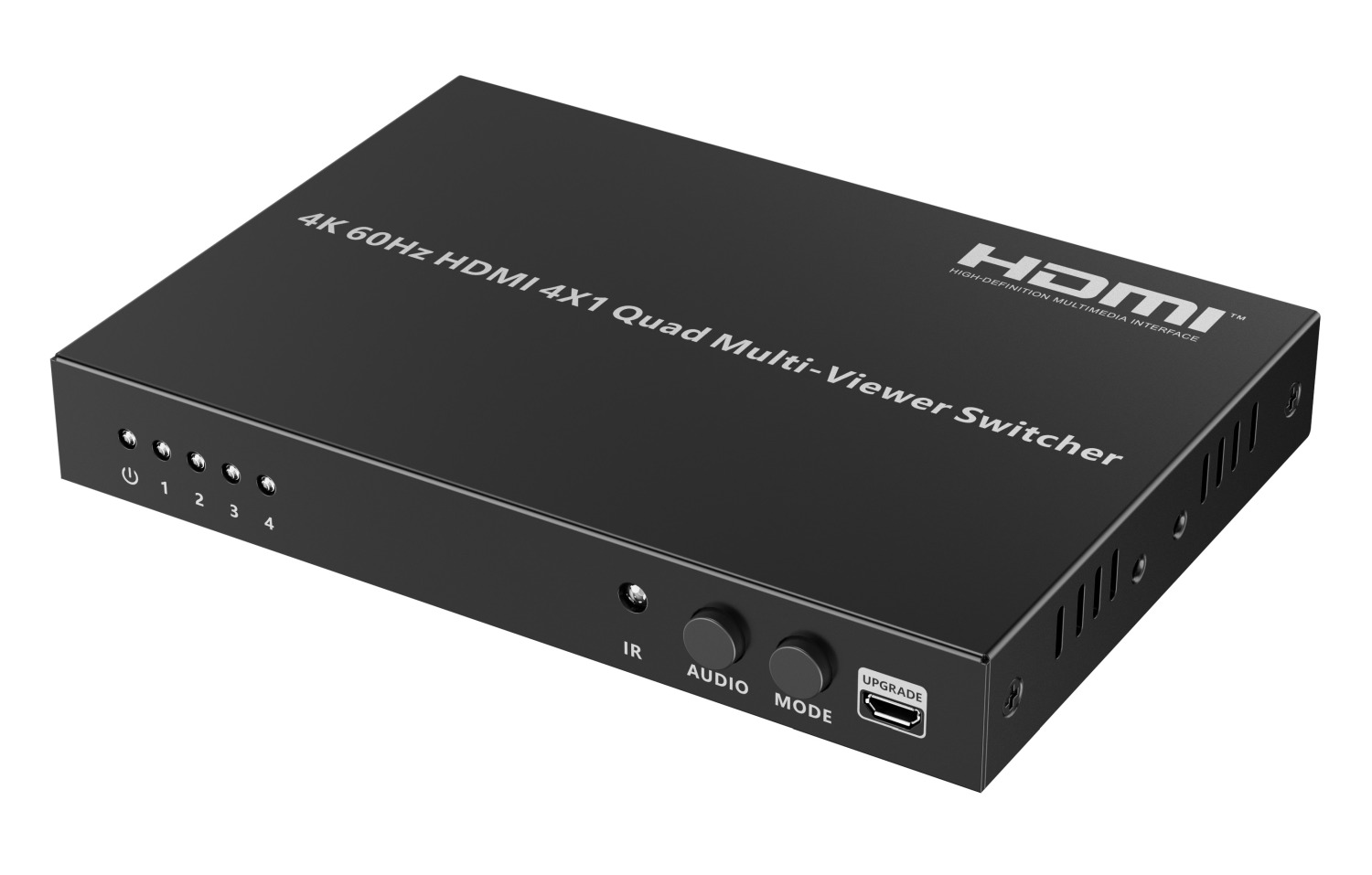 HDMI 4x1 Quad Multi-prohlížeč je vysoce výkonný přepínač a zobrazovač. Umožňuje přepínání vstupů na jeden výstup a dále zobrazení všech čtyř obrazů na jedné obrazovce.