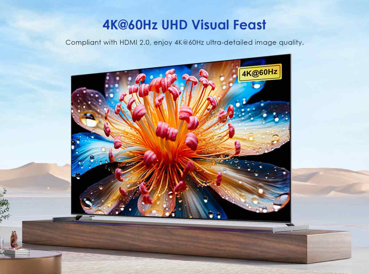 . Nejvyšší výstupní rozlišení až 4K@60Hz (3840x2160@60Hz) a 1080p@60Hz