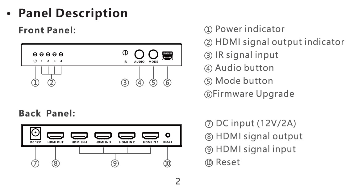 - Dokáže jednoduše přepínat mezi čtyřmi HDMI signály za pomoci tlačítka nebo dálkového ovládání.