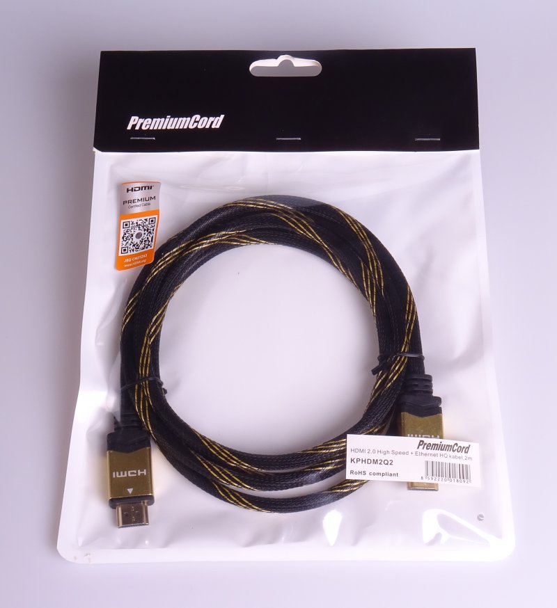 PremiumCord 4K HDMI 2.0b High Speed + Ethernet kabel, zlacené HQ konektory, bavlněné provedení, 1,5m