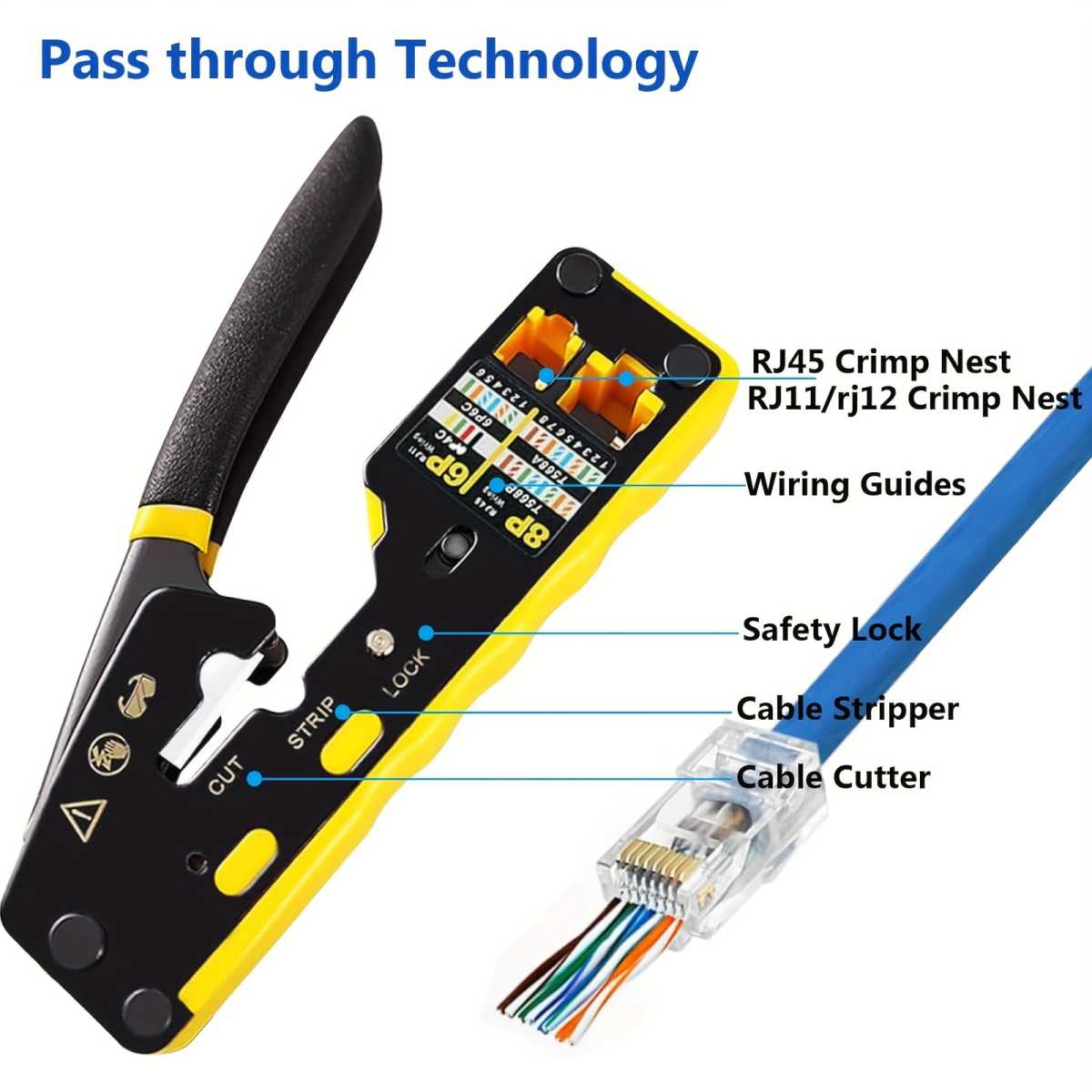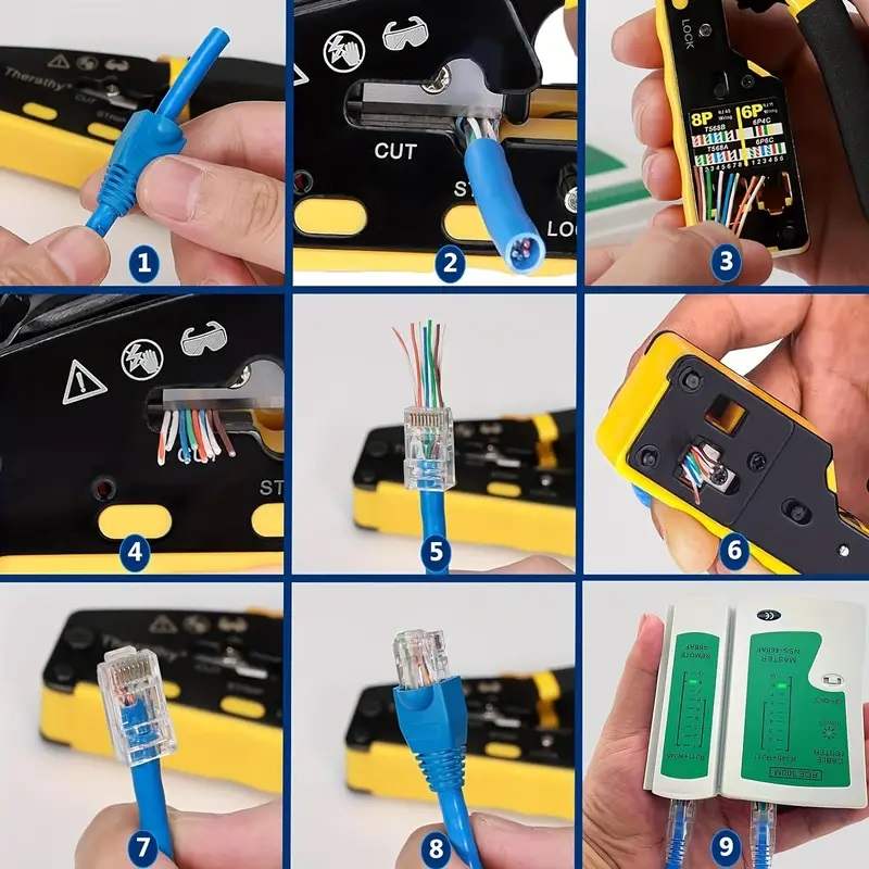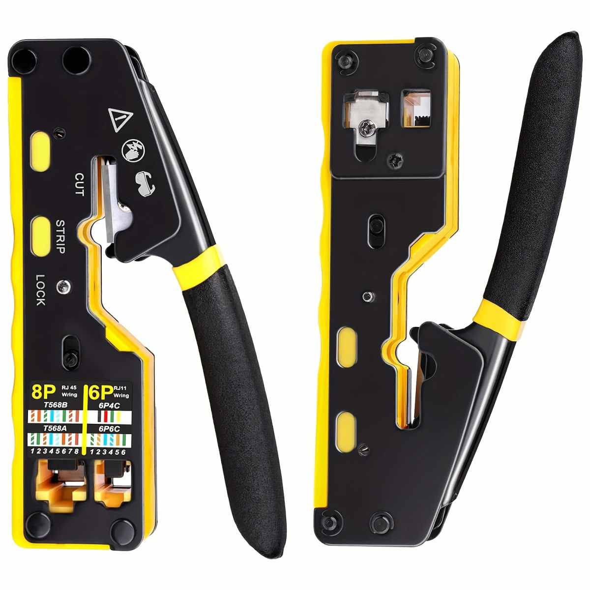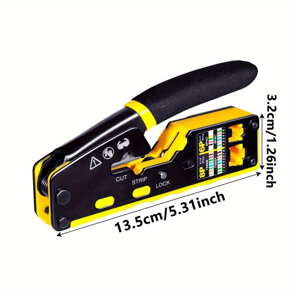 - Praktický krimpovací nástroj 3 v 1 pro stříhání, odizolování a spojování síťových kabelů s modulárními zástrčkami RJ45.
