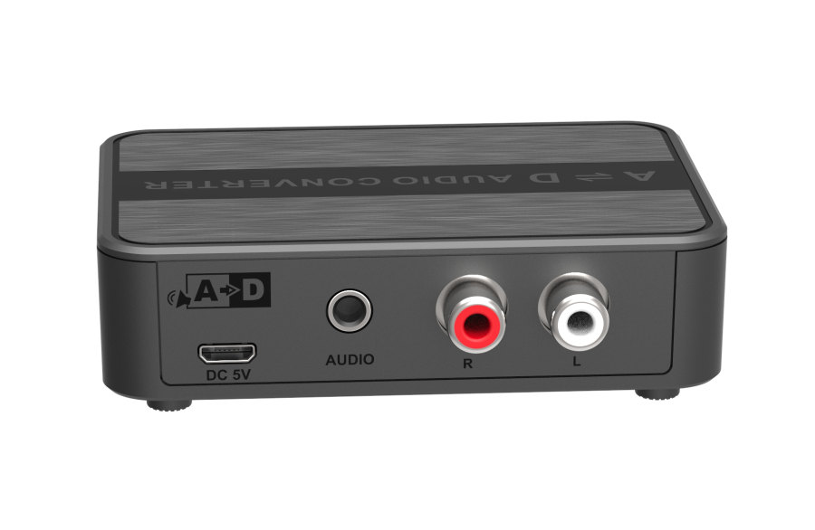 2) A-D převádí analogový signál z konektorů CINCH a stereo jack 3,5mm na digitální signál (coaxial SPDIF ) nebo optický ( Toslink )