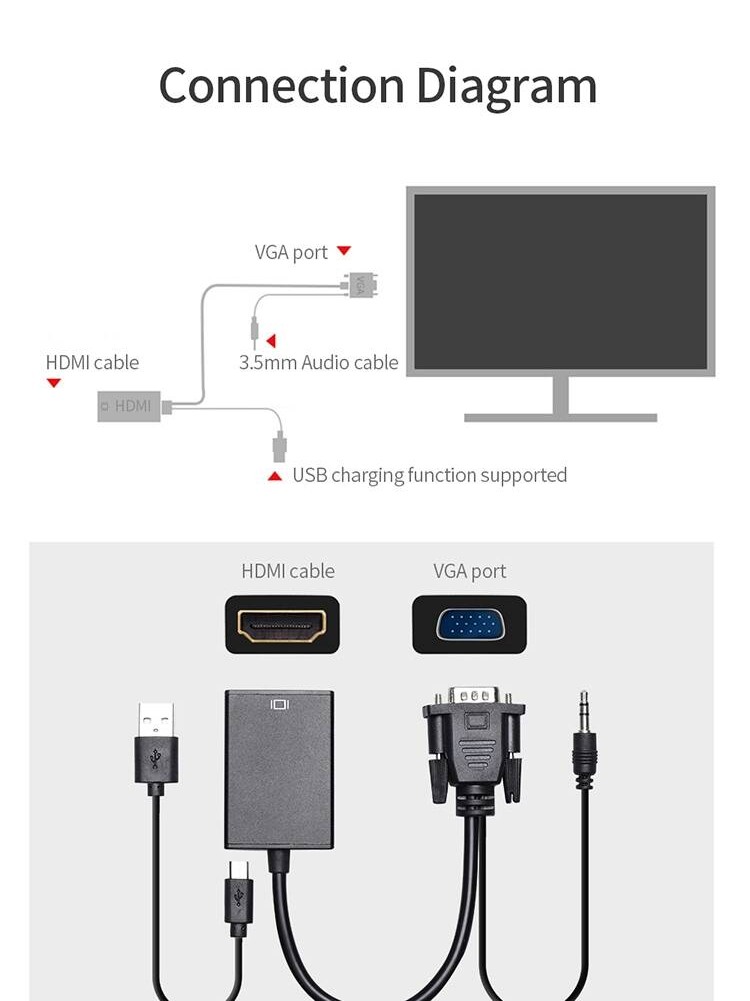 - Převádí signál VGA na digitální rozhraní HDMI pro LCD nebo TV
