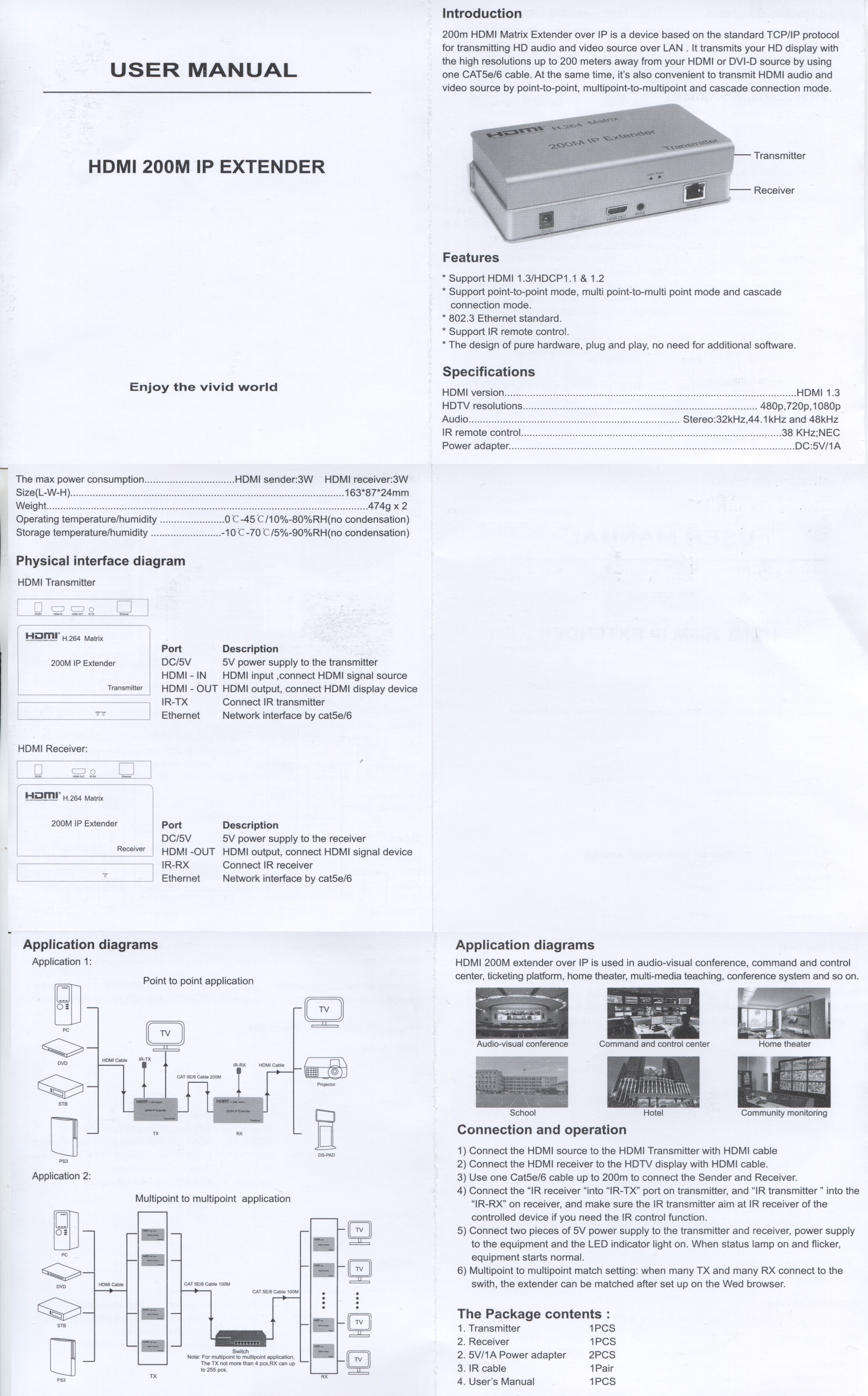 Zařízení umožňuje prostřednictvím LAN sítě přenést HDMI FULL HD signál až na 200m a současně řídící signály IR dálkového ovladače