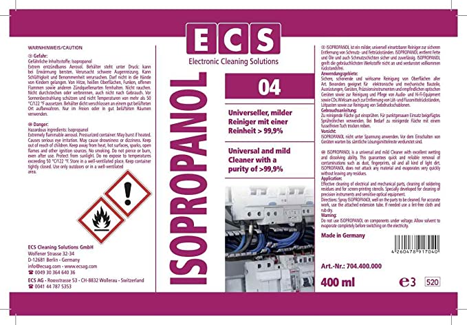 - Isopropanol sprej je zejména určen pro čištění následujících zařízení: páskové hlavy,diskové jednotky, fotokopírky, optická zařízení, čočky, desky plošných spojů, přesné nářadí, delikátní součástky.