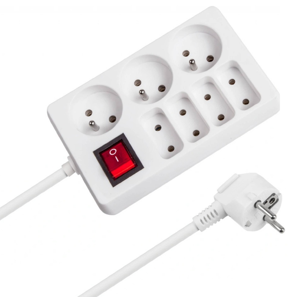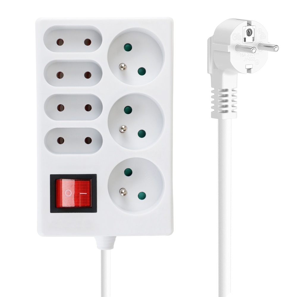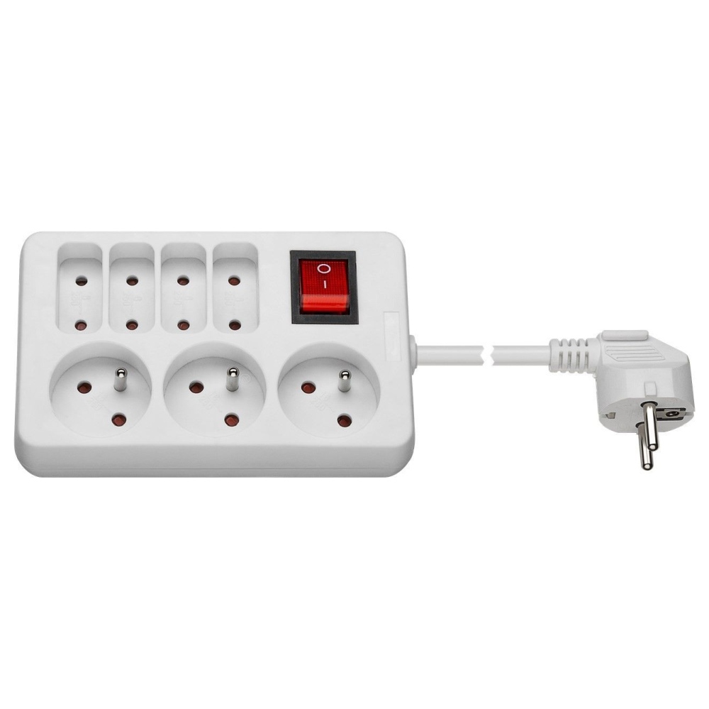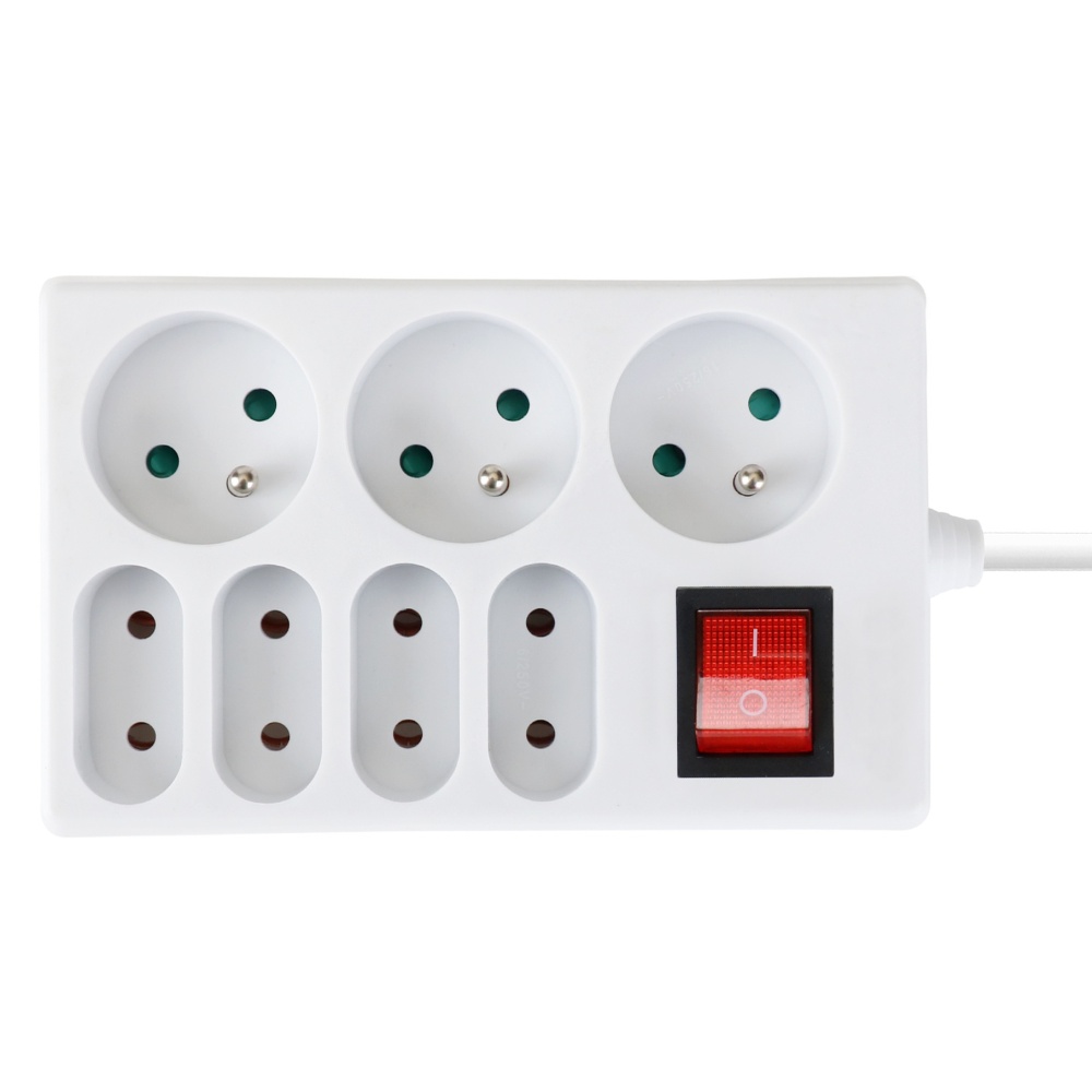 - Počet zásuvek: 3 kulaté zásuvky, 4 ploché zásuvky