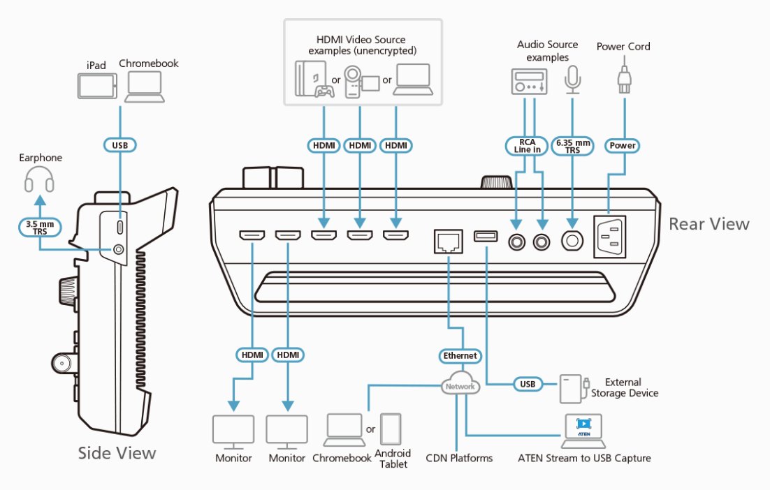Kompaktní skříň eliminuje problémy s prací s různými AV zařízeními. StreamLIVE ™ HD umožňuje vysílání video zdrojů HDMI pro vyšší kvalitu živého přenosu na platformy CDN, jako jsou YouTube Live, Facebook, a Twitch.