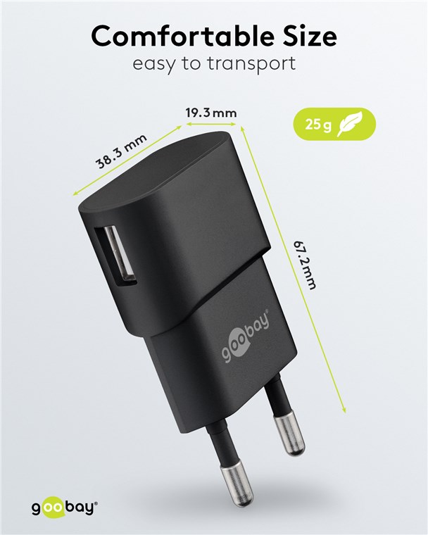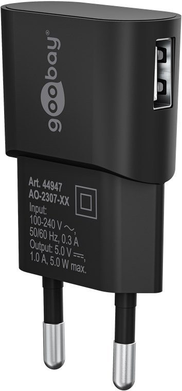 goobay Napájecí a nabíjecí adaptér 230V na USB, max.1A, černý