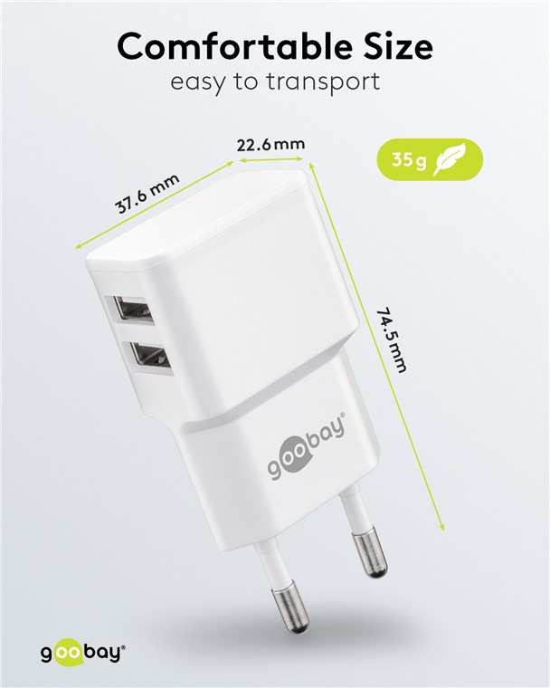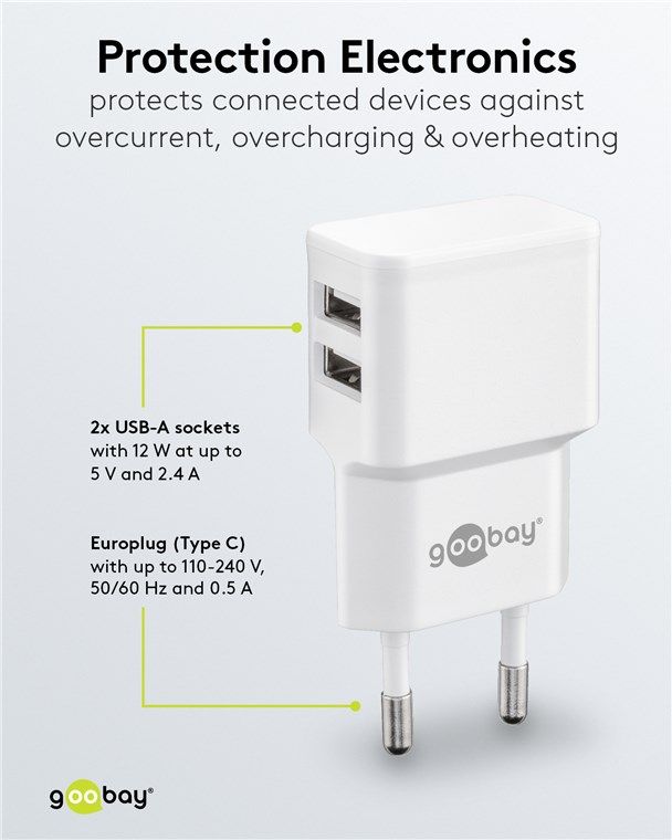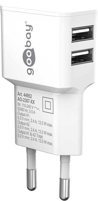 goobay Napájecí a nabíjecí adaptér 230V na 2x USB, max.2,4A, bílý
