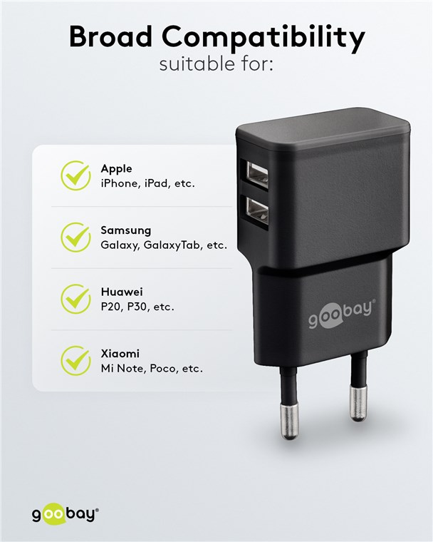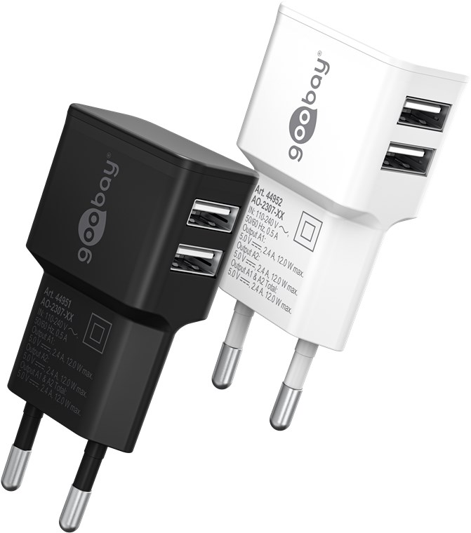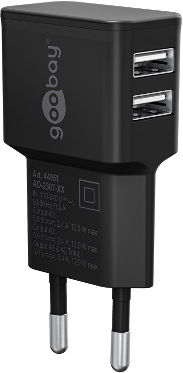 goobay Napájecí a nabíjecí adaptér 230V na 2x USB, max.2,4A, černý