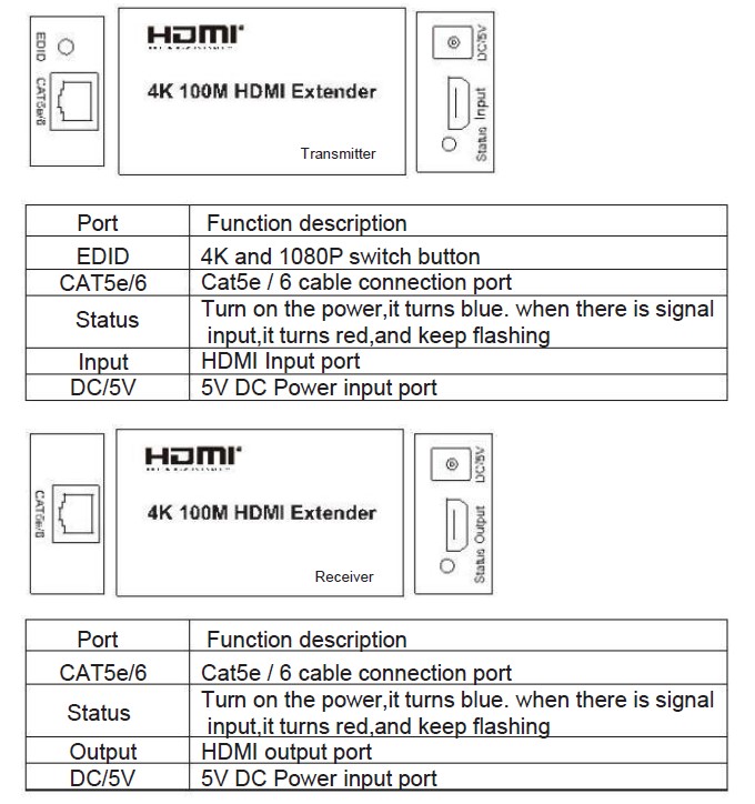 Zařízení umožňuje po jednom síťovém kabelu přenést HDMI signál v rozlišení 4K@30Hz nebo FULL HD 1080p až na 100m.